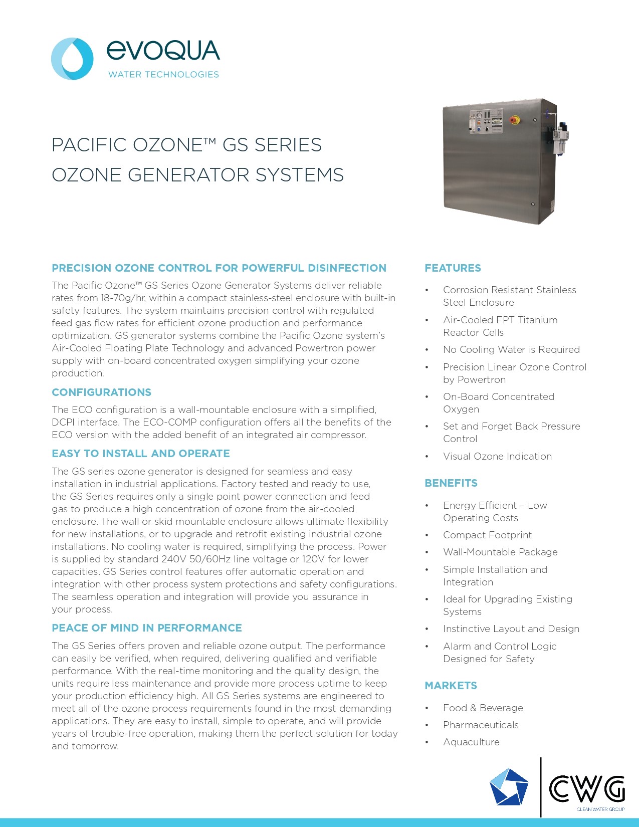 GS-Generatorsysteme kombinieren die eigene Floating-Plate-Technologie des Pacific Ozone-Systems mit Luftkühlung und fortschrittlicher Powertron-Stromversorgung mit eingebautem konzentriertem Sauerstoff und vereinfachen so Ihre Ozonproduktion.