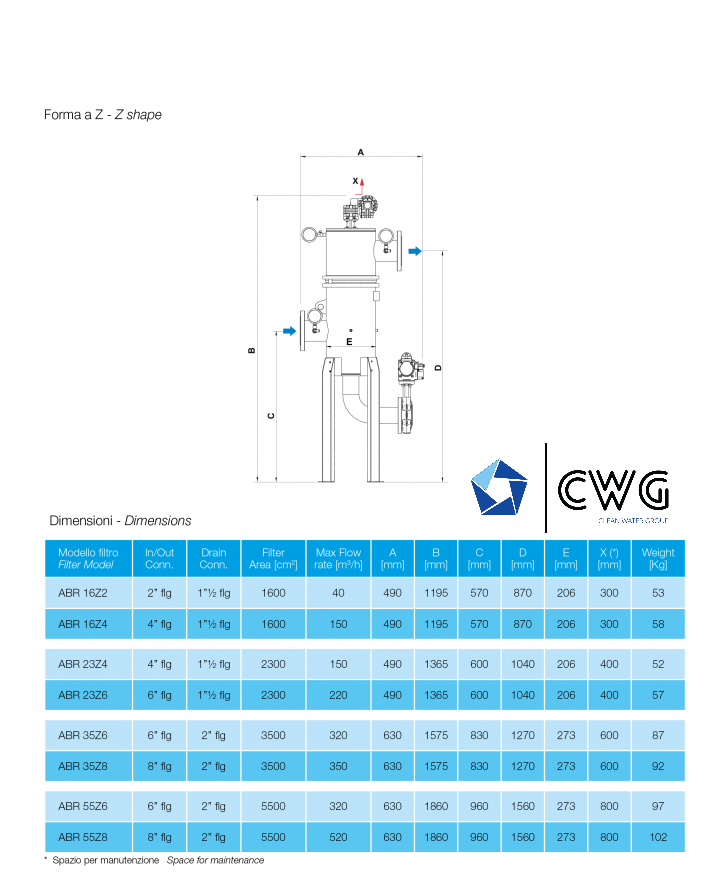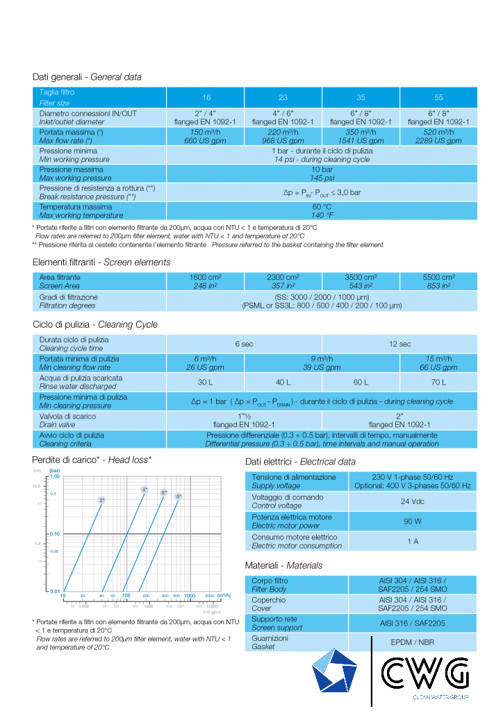 ABR-Filter können Durchflussraten von bis zu 1870 m³/h mit verschiedenen Siebgrößen bis zu 19800 cm² unterstützen, einen Filtrationsgradbereich zwischen 3000 und 100 μm abdecken und einen unterschiedlichen Bereich von Ein-/Ausgängen zwischen 2″ und 16″ aufweisen.